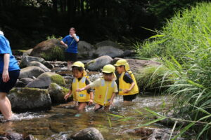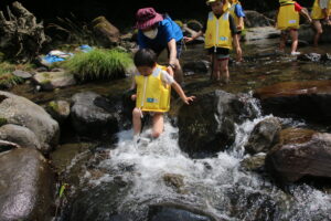 深い所に行ってみたり、岩の隙間でウォーター滑り台のように楽しんだり、川遊びも楽しかったようです。