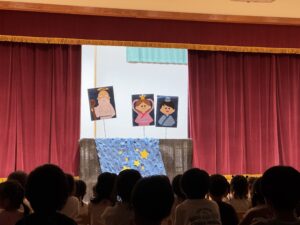 お遊戯室に集まった後、七夕の由来をペープサートで見ました。