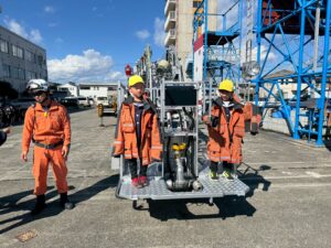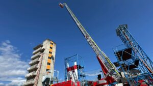 到着すると色々な車両や展示がたくさんあり、煙避難体験や起震車体験、消防車や救急車の説明、はしご車の伸びる様子の見学、耐火服の着用体験など、盛りだくさんでした。