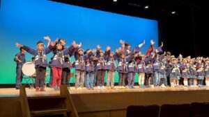 今年は代表園として、上大類こども園、鼻高こども園、上滝こども園と一緒に、壇上で「火の用心の歌」を披露しました。
